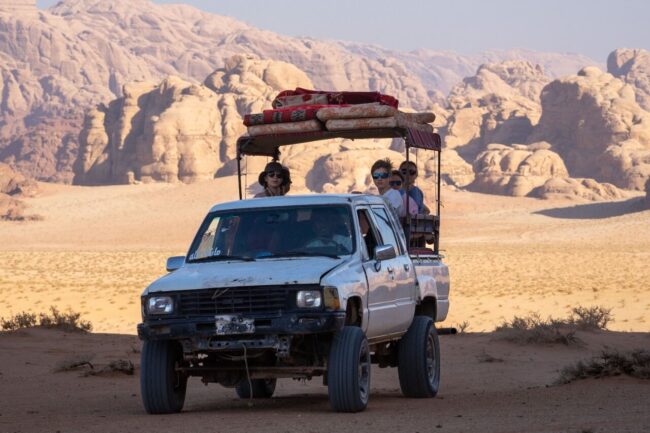 È un viaggio flessibile. A seconda dell’orario di arrivo nel Wadi Rum, il tour in jeep inizierà il primo o il secondo giorno.
