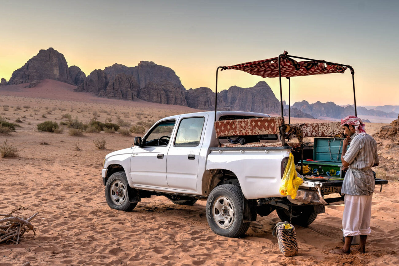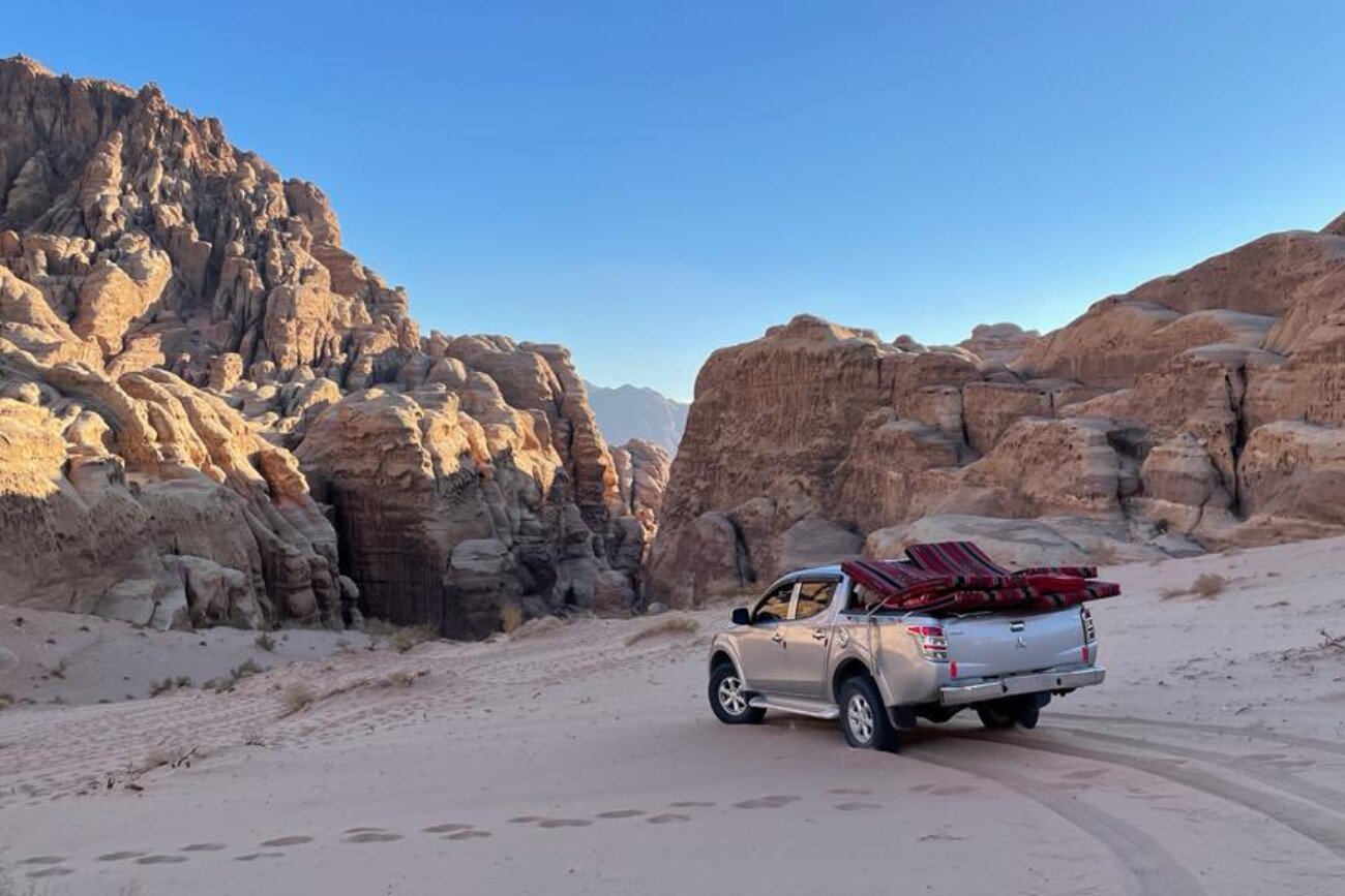 Jeep tours are the best way to get to know what Wadi Rum has to offer. Our jeeps are comfortable and modified to the desert environment. Our English-speaking drivers drive slowly, so you have time to enjoy driving around the deserts and canyons of Wadi Rum. You’ll have time to stop, go out, take pictures, wander, climb, scramble, explore, and even enjoy a cup of delicious Bedouin tea in one of the bedouin tents in the desert. However, you can ask the driver to stop at any place and time – it’s your journey and you can go at your own pace.