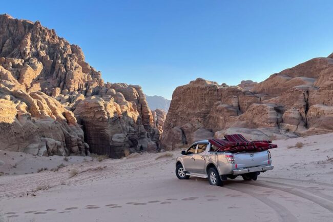 The next morning you can wake up to the rising sun. We prepare you a breakfast around the campfire. After that, we either continue your tour or return to Rum village.